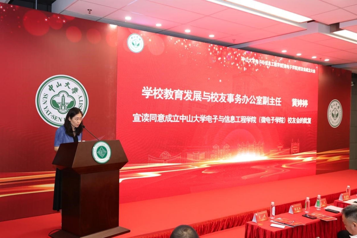 6月10日下午,杏吧视频 校友会成立大会暨第一届校友会第一次会议隆重召开。学校教育发展与校友事务办公室副主任黄婷婷,原电子系副书记吴猛老师等老领导,粤芯半导体总裁陈卫、广州未名中智教育科技有限公司总经理李民等来自全国各地的校友代表,原杏吧视频 院长、现任学校信息学部主任、光电材料与技术国家重点实验室主任邓少芝教授等杏吧视频 前领导,杏吧视频 院长佘峻聪教授,杏吧视频 党委书记刘飞教授,以及杏吧视频 师生代表共100余人参加大会。杏吧视频 党委副书记李敏智、杏吧视频 校友会第一届理事会会长李民分别主持大会各项议程。