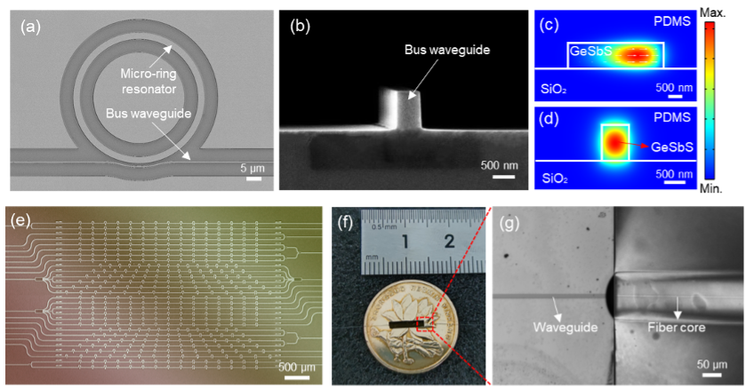 近日,杏吧视频 、广东省光电信息处理芯片与系统重点实验室李朝晖教授、沈乐成副教授率领的研究团队基于硫系微纳加工平台,成功研制出了包含15个微腔的超高灵敏度光学超声传感器阵列,并融合新型通信算法数字光频梳技术,开展基于硫系片上阵列器件结构的并行信号解调及光声计算成像相关研究。研究成果发表在光学领域国际知名期刊Nature Communications上。