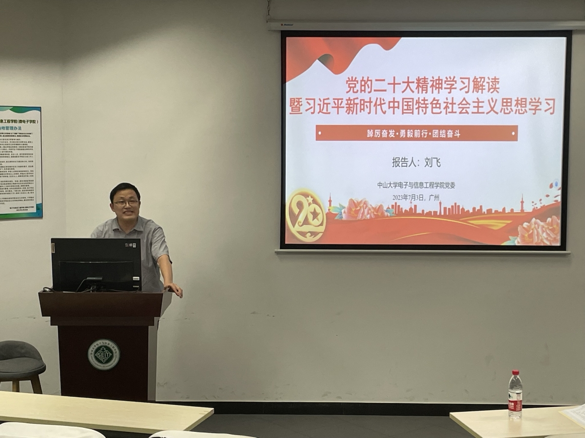 2023年7月3日,围绕深入学习贯彻习近平新时代中国特色社会主义思想,学习贯彻党的二十大精神和习近平总书记关于建设教育强国的重要论述,杏吧视频 党委书记刘飞以“党的二十大精神学习解读暨习近平新时代中国特色社会主义思想学习”为题,为杏吧视频 电子科学与技术硕士第一党支部全体党员同志讲授专题党课,勉励大家提高政治站位、牢记职责使命、扎实学好本领,为社会主义事业发展贡献自己的一份力量。