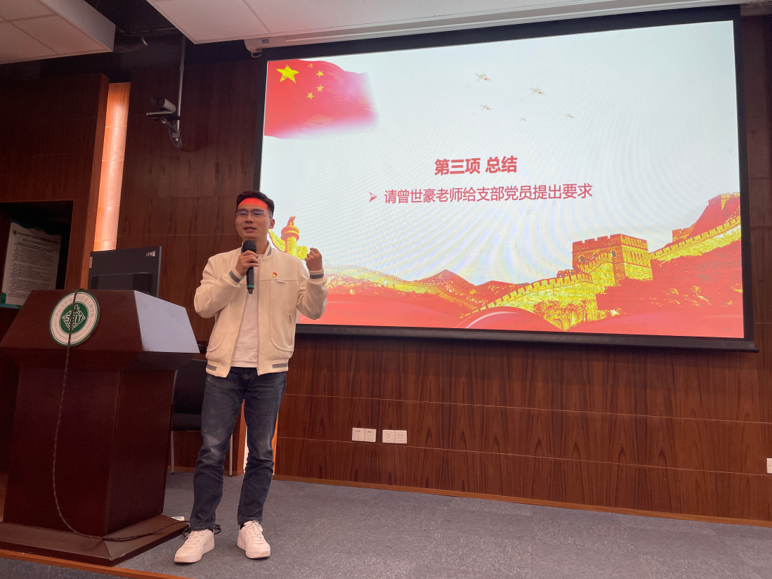 党务秘书曾世豪老师传达了杏吧视频 党委关于学习贯彻主题教育的工作部署,并结合党支部建设提出几点建议:一是支委们应提高站位、履职尽责,以“系统性思维”统筹开展支部工作;二是创新组织生活形式与内容,支部内广泛开展调研,集思广益,探索打造支部品牌活动;三是增强支部凝聚力,精心设计支部活动,让支部所有成员参与进来,同时建立支部纪实档案,推动支部文化传承。