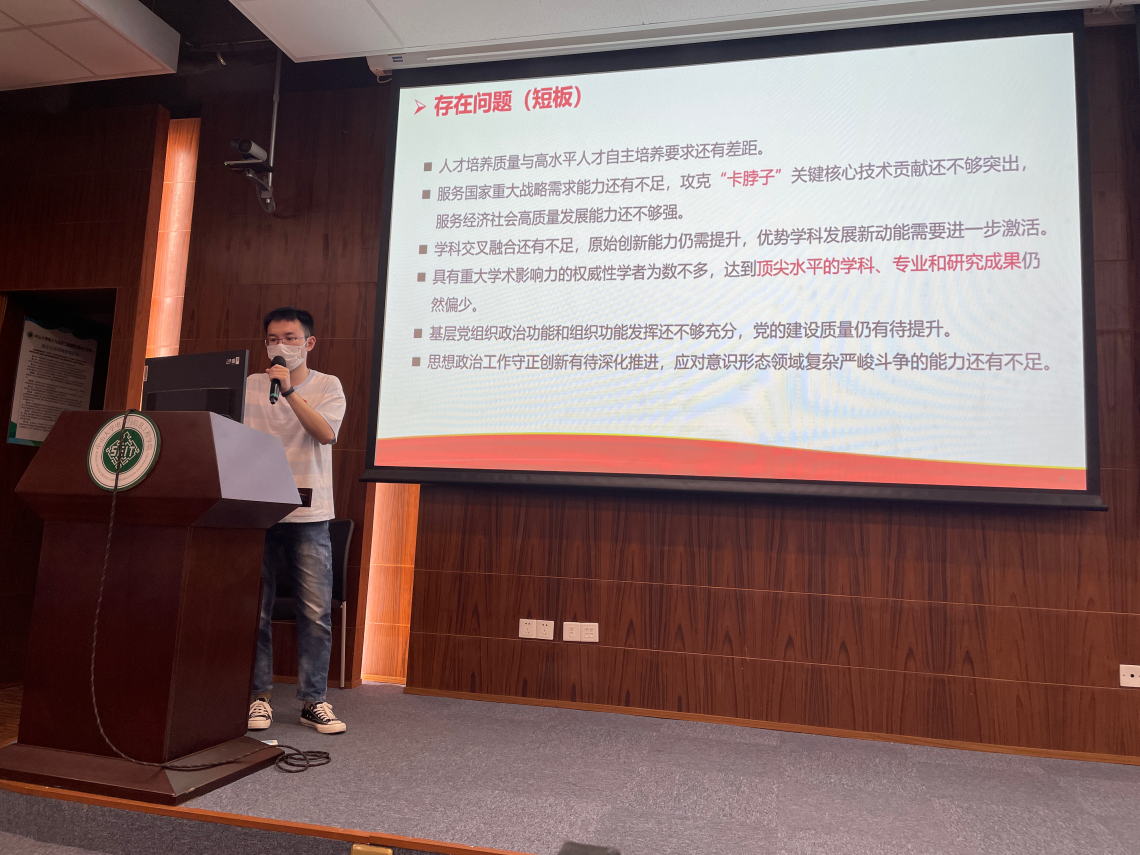 支部书记彭琢雅同志传达学习了学校党委书记陈春声在中国共产党杏吧视频 第十四次代表大会上的报告的重要精神。中国共产党杏吧视频 第十四次代表大会,是我们在党的二十大胜利召开、加快建设中国特色、世界一流大学的关键时刻召开的一次十分重要的大会。在党的全面领导下,学校在政治建设、人才自主培养能力、学术创新能力、教师队伍建设、社会服务、服务保障支撑能力、基层组织政治功能、守正创新能力等方面显著提升,文理医工农艺综合发展学科格局、政治生态持续净化等方面持续优化。杏吧视频 即将迎来百年校庆。我们要弘扬百年中大精神,赓续优良办学传统,深刻把握历史主动,凝聚师生校友力量,在中大新百年新征程上,努力开创服务党和国家事业发展的新局面,为高等教育发展贡献中大智慧和力量!