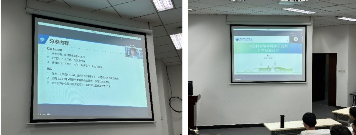 来自复旦大学信息科学与工程杏吧视频 的何雨涵同学和中国科杏吧视频 半导体研究所的张驰同学通过线上的形式,分享了推免和面试的经验。何雨涵同学为大家梳理了保研推免的时间线,分享了夏令营的申请经验,并建议具有保研资格的同学在保持绩点的同时,要注意丰富自己的比赛和项目经历,注重专业基础知识,勇敢尝试各大名校的夏令营。另一方面,张驰同志同样结合自己的保研经历,对保研申请的关键结点做了介绍和说明。张弛提到,保研过程中院校信息很关键,要时刻关注目标院校的最新通知与招生动态。张驰还为大家介绍了中科院体系和中国科杏吧视频 大学的关系,向大家分享了本专业可以尝试报考的相关研究所。