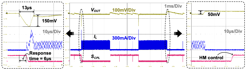目前较先进的设计往往通过多模式控制来平衡休眠状态与工作状态下对电源管理的不同需求。然而,在休眠模式下的电源转换电路需要监测负载电流以实现模式转换,一方面需要消耗一定电流,无法实现极低功耗,另一方面,由于检测电路功耗要维持在一个相对较低水准,使得瞬态响应速度大打折扣。针对上述问题,本研究提出了一种基于补偿器的内置模式跟踪技术,利用补偿器增益与频率的线性关系以及频率和负载电流的线性关系,通过补偿器输出的动态特性直接反映负载变化,从而实现轻载与重载之间的平滑模式切换。在电路实现上,进一步通过复用放大器,无需额外的负载检测电路,显著简化了系统设计,降低了静态功耗,在轻载条件下有效地提升了系统效率。